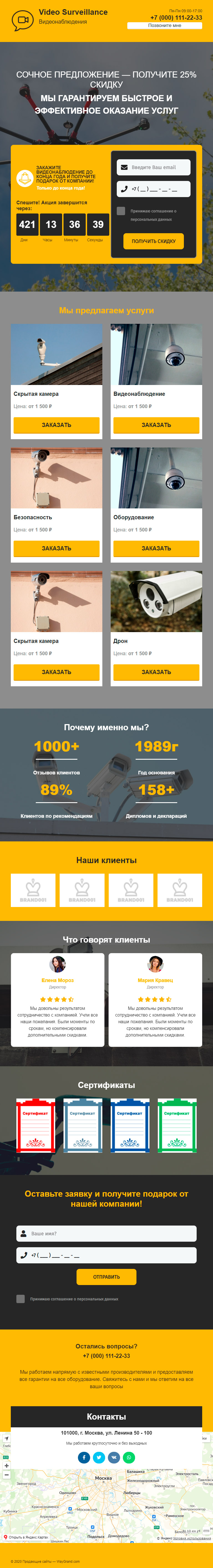 Закажите готовый продающий сайт лендинг #1609202 в Батайске за 1-3 дня «под ключ»: свёрстан, отрисован и готов к рекламе. Тематика шаблона «Видеонаблюдение».