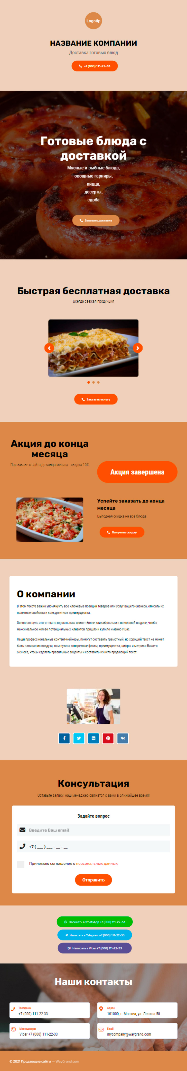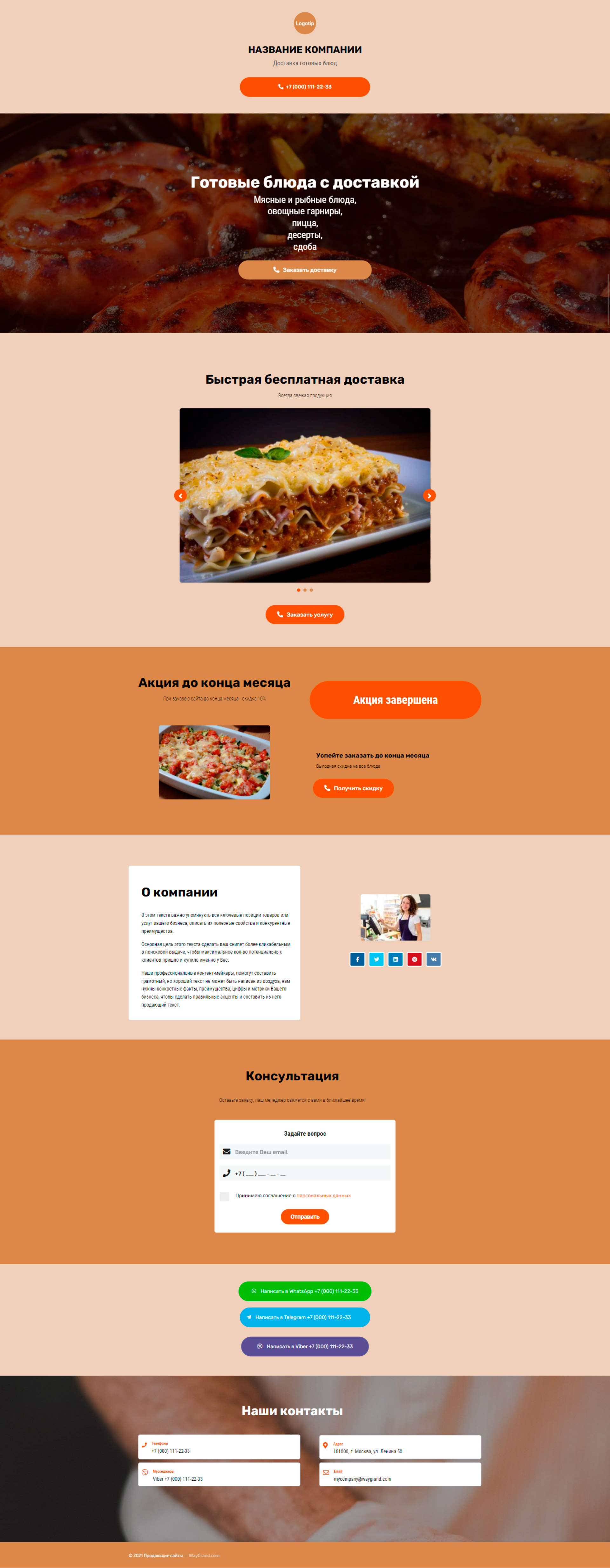Закажите готовый продающий сайт визитка #0422101 в Батайске за 5-7 дня «под ключ»: свёрстан, отрисован и готов к рекламе. Тематика шаблона «Готовые блюда с доставкой».