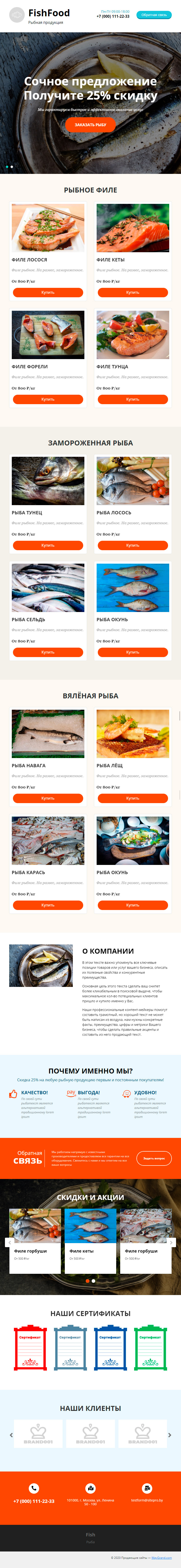 Закажите готовый продающий сайт лендинг #1731201 в Батайске за 1-3 дня «под ключ»: свёрстан, отрисован и готов к рекламе. Тематика шаблона «Рыбная продукция».