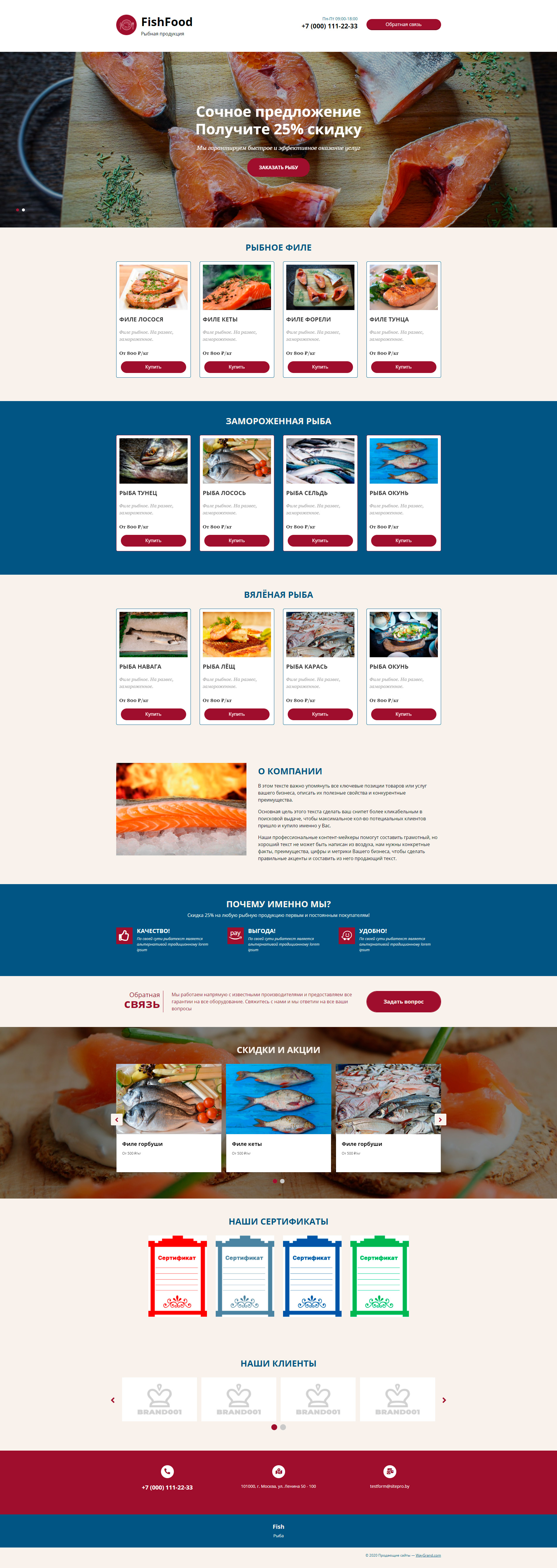 Закажите готовый продающий сайт лендинг #1731203 в Батайске за 1-3 дня «под ключ»: свёрстан, отрисован и готов к рекламе. Тематика шаблона «Рыбная продукция».