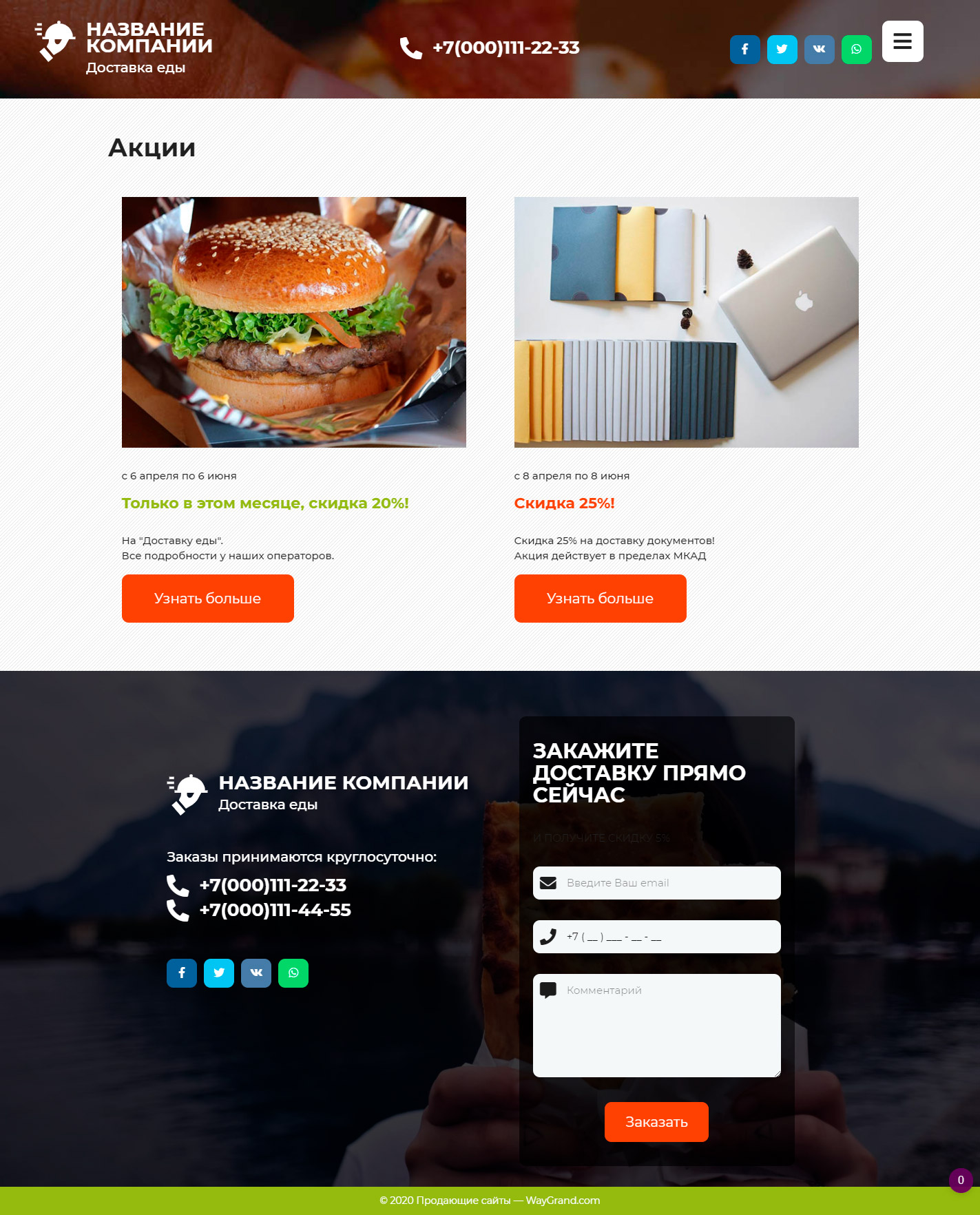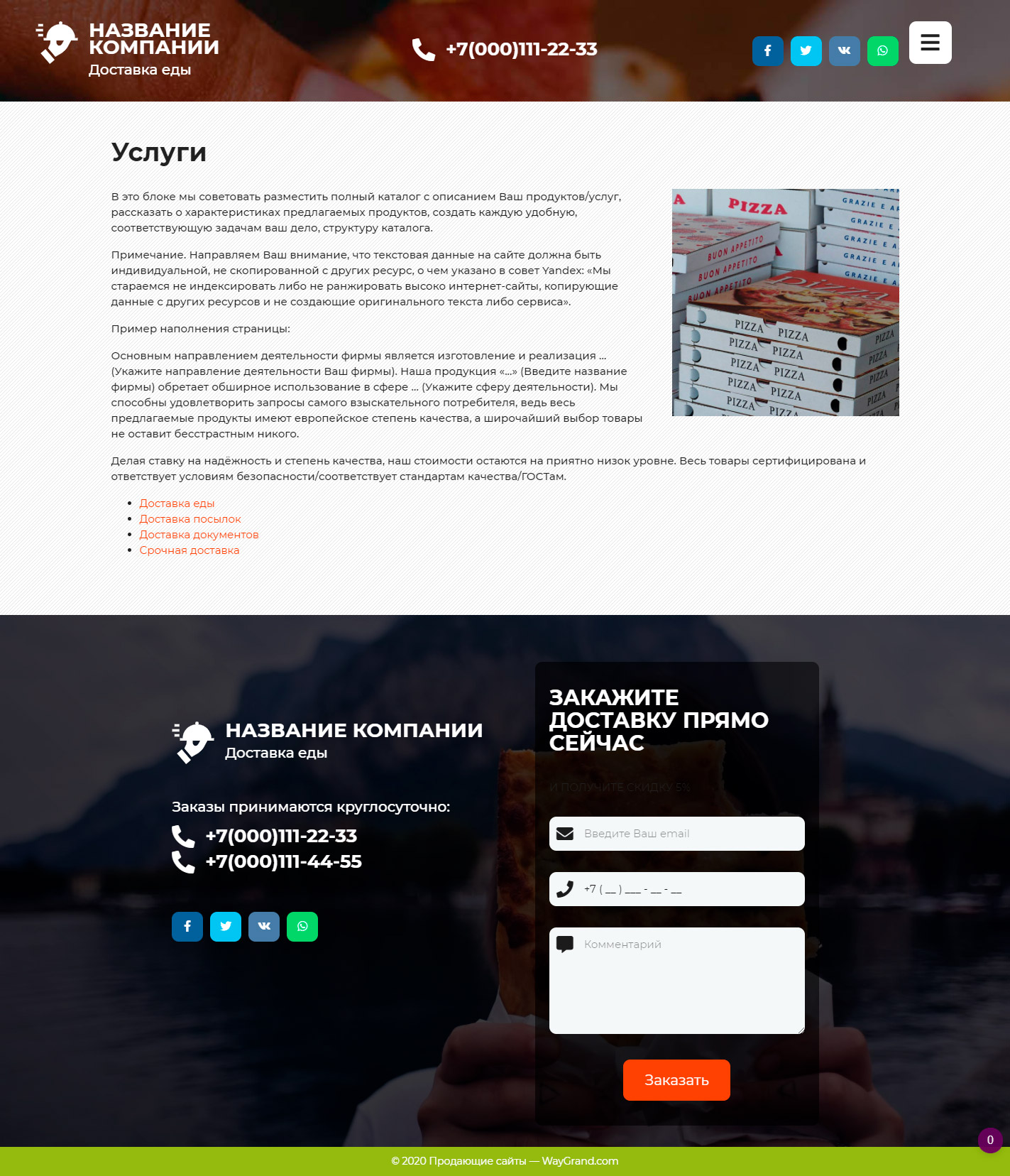 Готовый сайт визитка Курьерская доставка еды #3071302 — Купить на WayGrand.com в Батайске