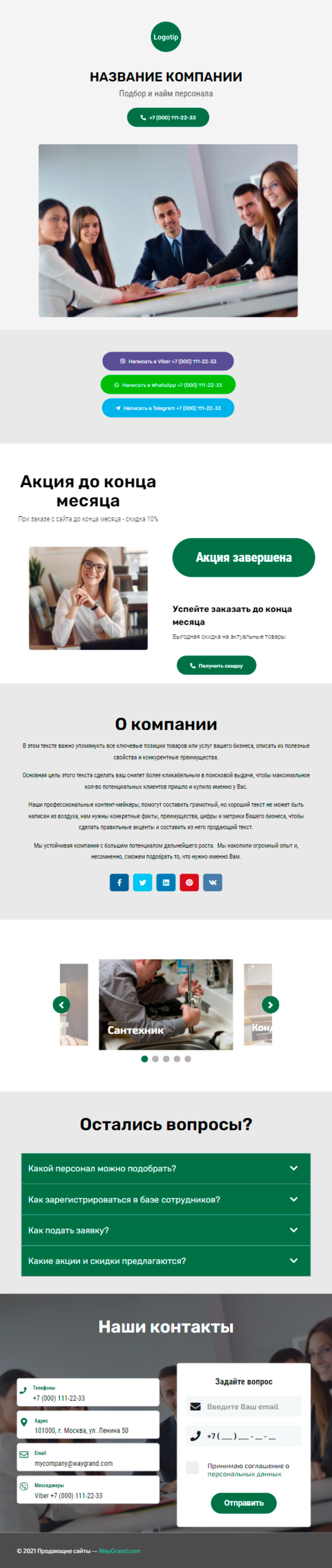 Закажите готовый продающий сайт визитка #1415101 в Батайске за 5-7 дня «под ключ»: свёрстан, отрисован и готов к рекламе. Тематика шаблона «Подбор и найм персонала».