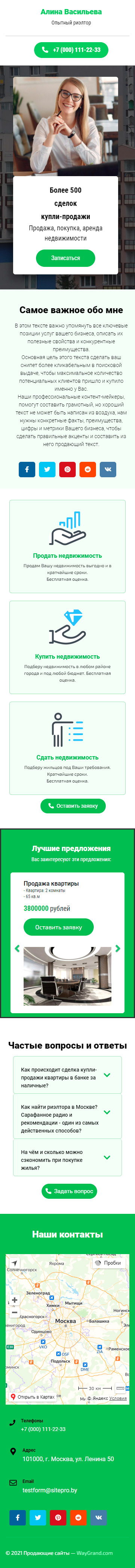 Закажите готовый продающий сайт визитка #2102101 в Батайске за 5-7 дня «под ключ»: свёрстан, отрисован и готов к рекламе. Тематика шаблона «Опытный риэлтор».