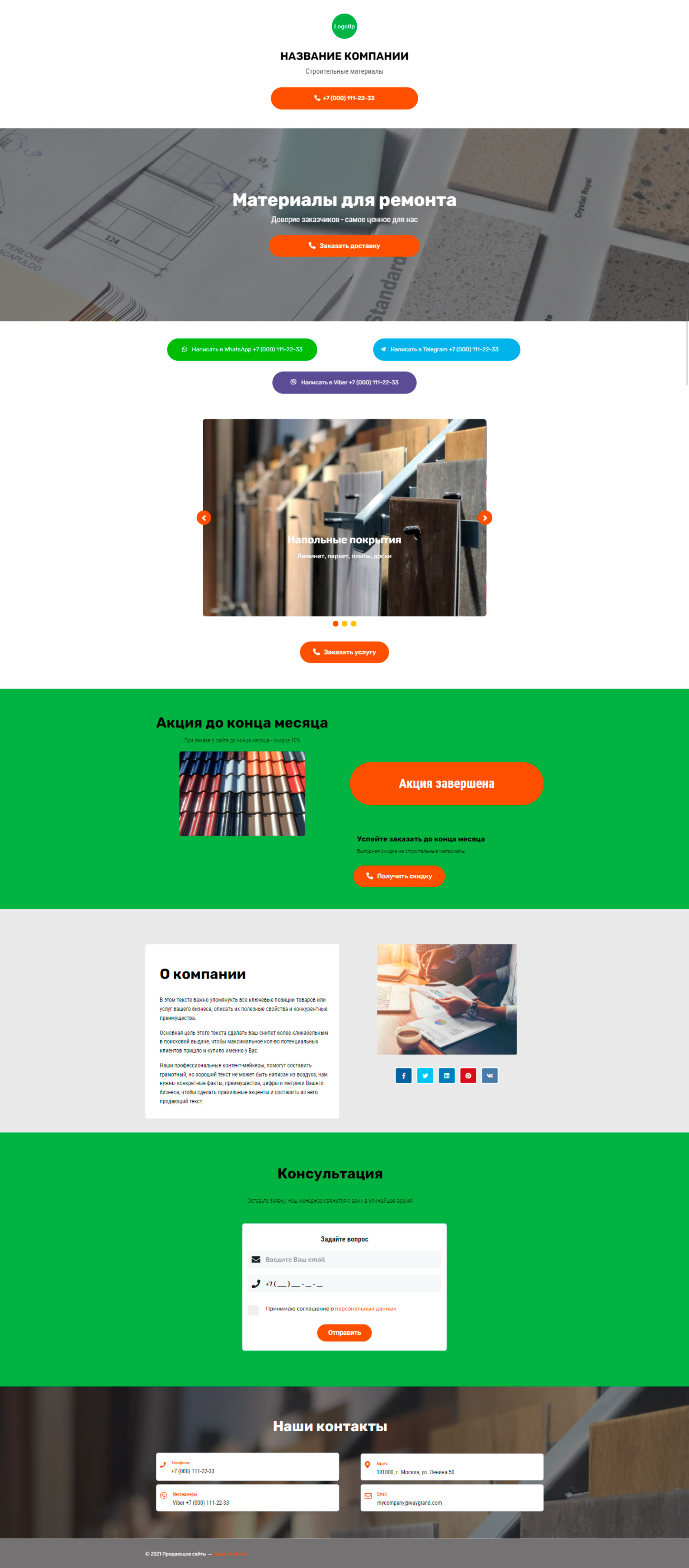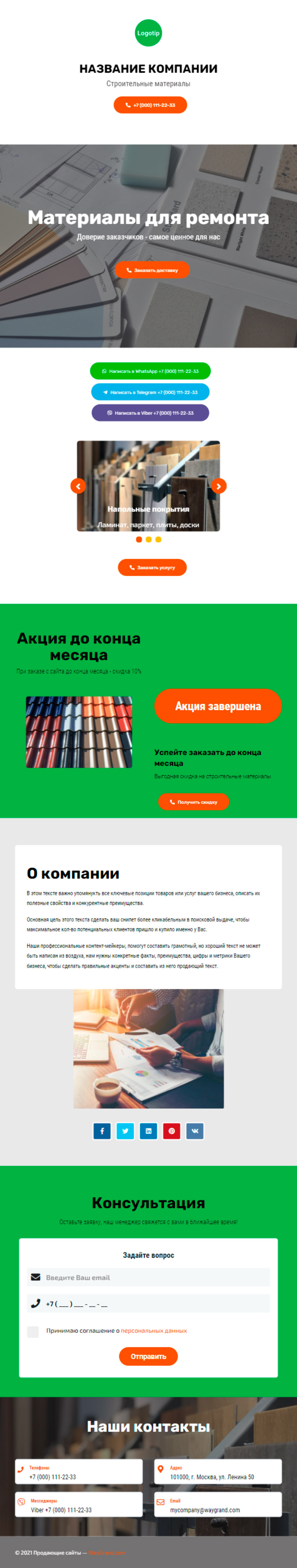 Закажите готовый продающий сайт визитка #2050101 в Батайске за 5-7 дня «под ключ»: свёрстан, отрисован и готов к рекламе. Тематика шаблона «Строительные материалы».