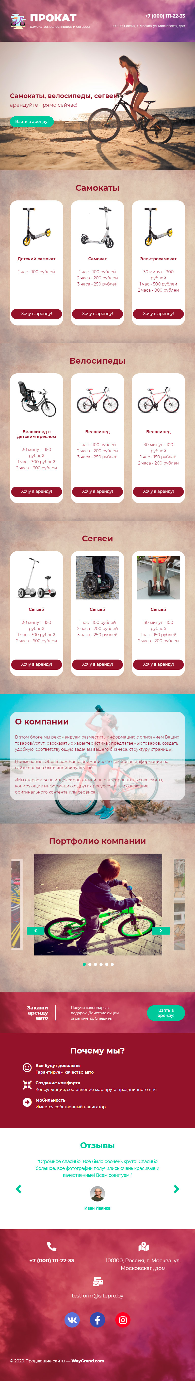 Закажите готовый продающий сайт лендинг #1907201 в Батайске за 1-3 дня «под ключ»: свёрстан, отрисован и готов к рекламе. Тематика шаблона «Прокат самокатов и велосипедов».