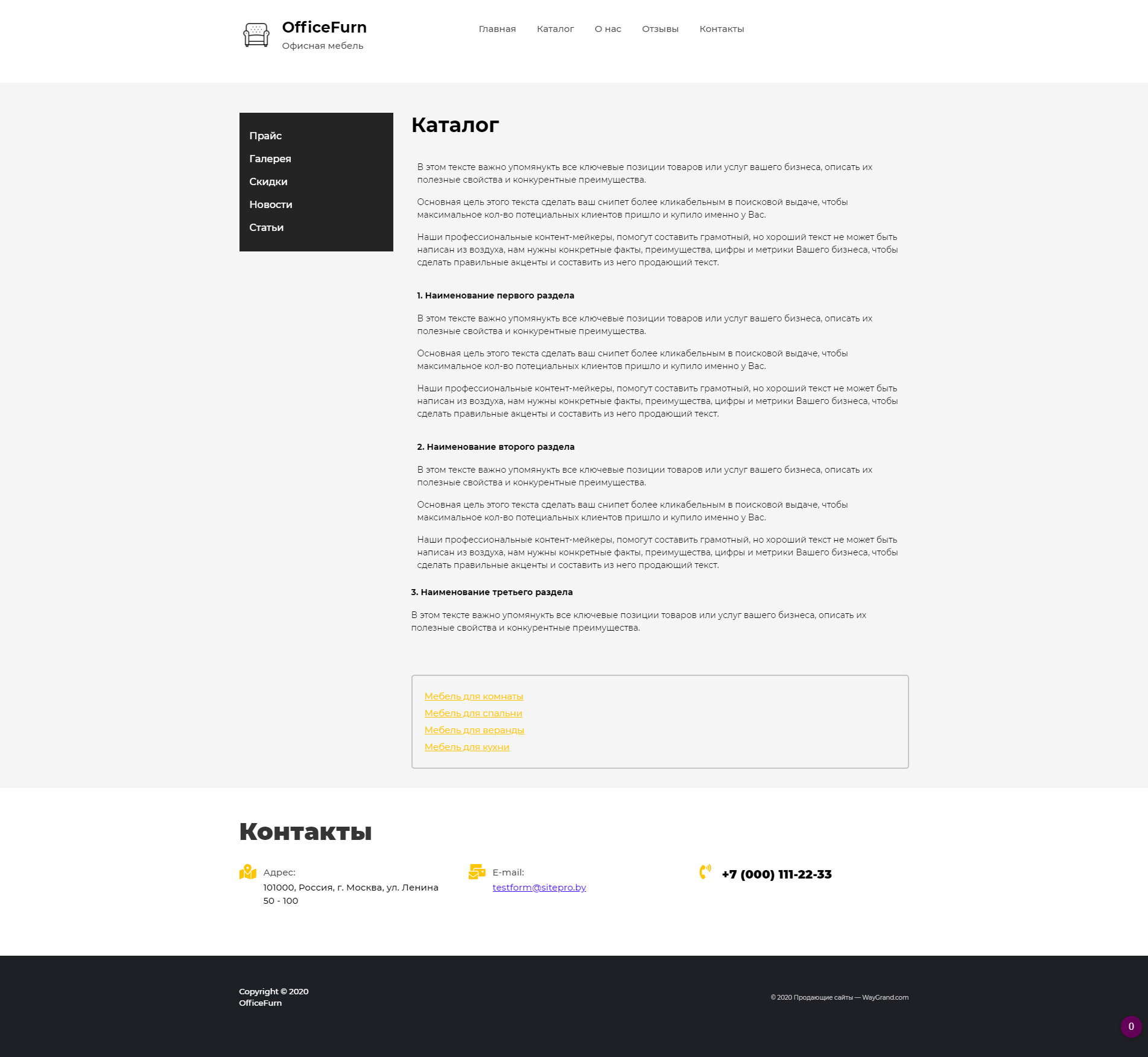 Закажите готовый продающий сайт визитка #0921301 в Батайске за 5-7 дня «под ключ»: свёрстан, отрисован и готов к рекламе. Тематика шаблона «Офисная мебель».