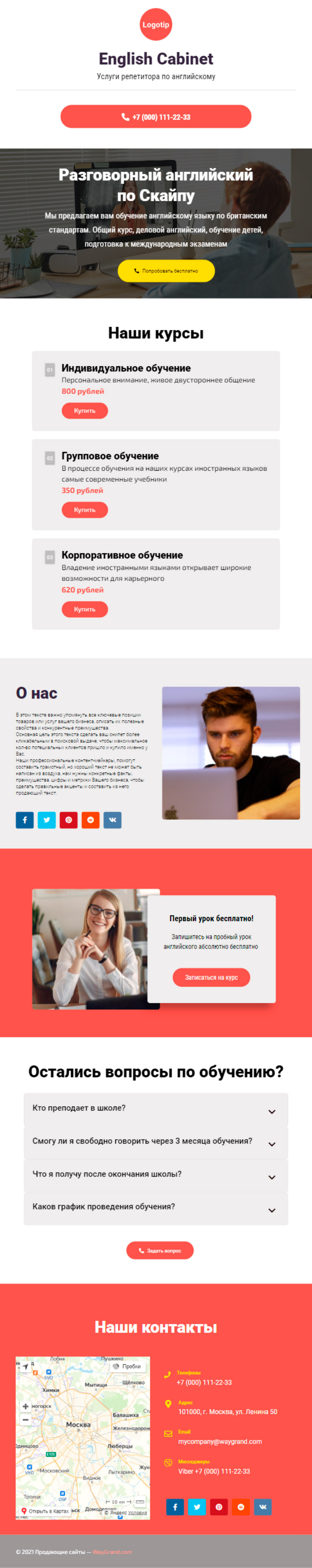 Закажите готовый продающий сайт визитка #1463101 в Батайске за 5-7 дня «под ключ»: свёрстан, отрисован и готов к рекламе. Тематика шаблона «Услуги репетитора по английскому».