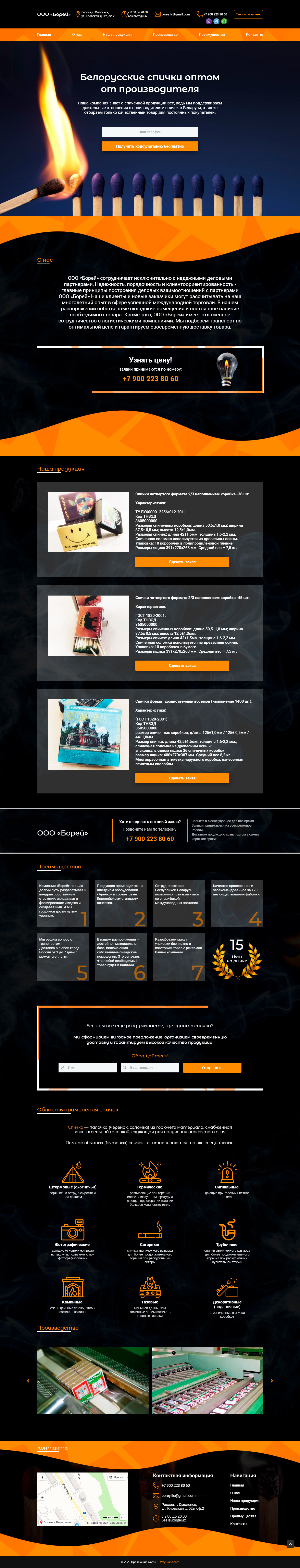 Закажите готовый продающий сайт лендинг #115 в Батайске за 1-3 дня «под ключ»: свёрстан, отрисован и готов к рекламе. Тематика шаблона «Белорусские спички оптом от производителя».